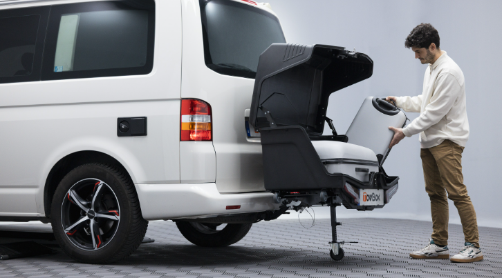 TowBox Camper es un portaequipajes especialmente diseñado para furgonetas, ya que permite la apertura de puertas y portones con comodidad. Va colocado sobre la bola de enganche del vehículo. Los campistas pueden ganar hasta 330 litros de espacio en el interior de la furgoneta con este portaequipajes. Consulta aquí qué furgonetas son compatibles con el modelo de bastidor corto.